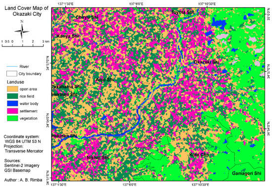 The authors give thanks to GSI for providing elevation data, Japan Meteorological Agency for rainfall data, MLIT for the soil map, and ESA’s Earth Observation Programmes for providing Sentinel-2 imagery. Our greatest acknowledgment belongs to Urban Science reviewers for their great suggestions to improve this study. We also thank Takumi Kajitani who explained the study area, Koji Asai for the valuable discussion, and Takahiro Osawa, I Nyoman Sudi Parwata and Abd. Rahman As-syakur, for their great contribution during this study. Special thanks to Kira LaMarra Adams for her kindness in proofreading this manuscript.