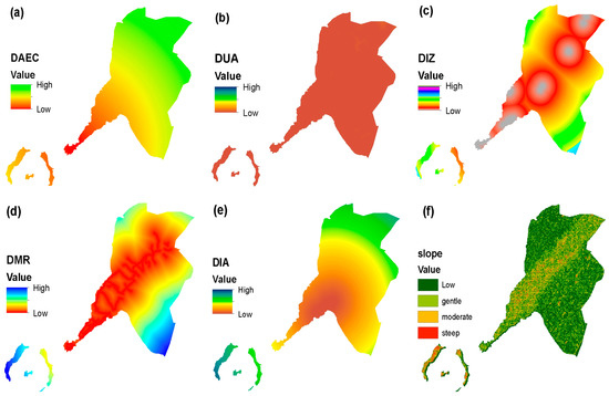 | Variable | DAEC | DUA | DIZ | DMR | DIA | Slope | Elevation | VIF |