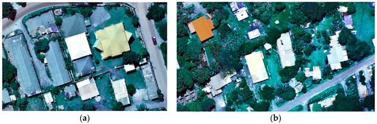 In different areas, diverse landscapes may consist of various physical land objects, such as farmlands or buildings, water channels or roads, and fences or walls—which may have influence on the presence of general boundaries: they may double with these physical objects. As shown in Figure 2, in Port Vila, intense constructions split the land into small plots or parcels. This circumstance not only increases the workload for ground-based cadastral surveying, but also for land boundaries extracted from remote sensing data. Figure 2b shows that in suburban regions, many parcel boundaries are marked by thin fences. These fences are often hidden or obscured by vegetation clusters: they are difficult to distinguish from aerial or satellite imagery. These general boundaries are understood as being common in the landscape.