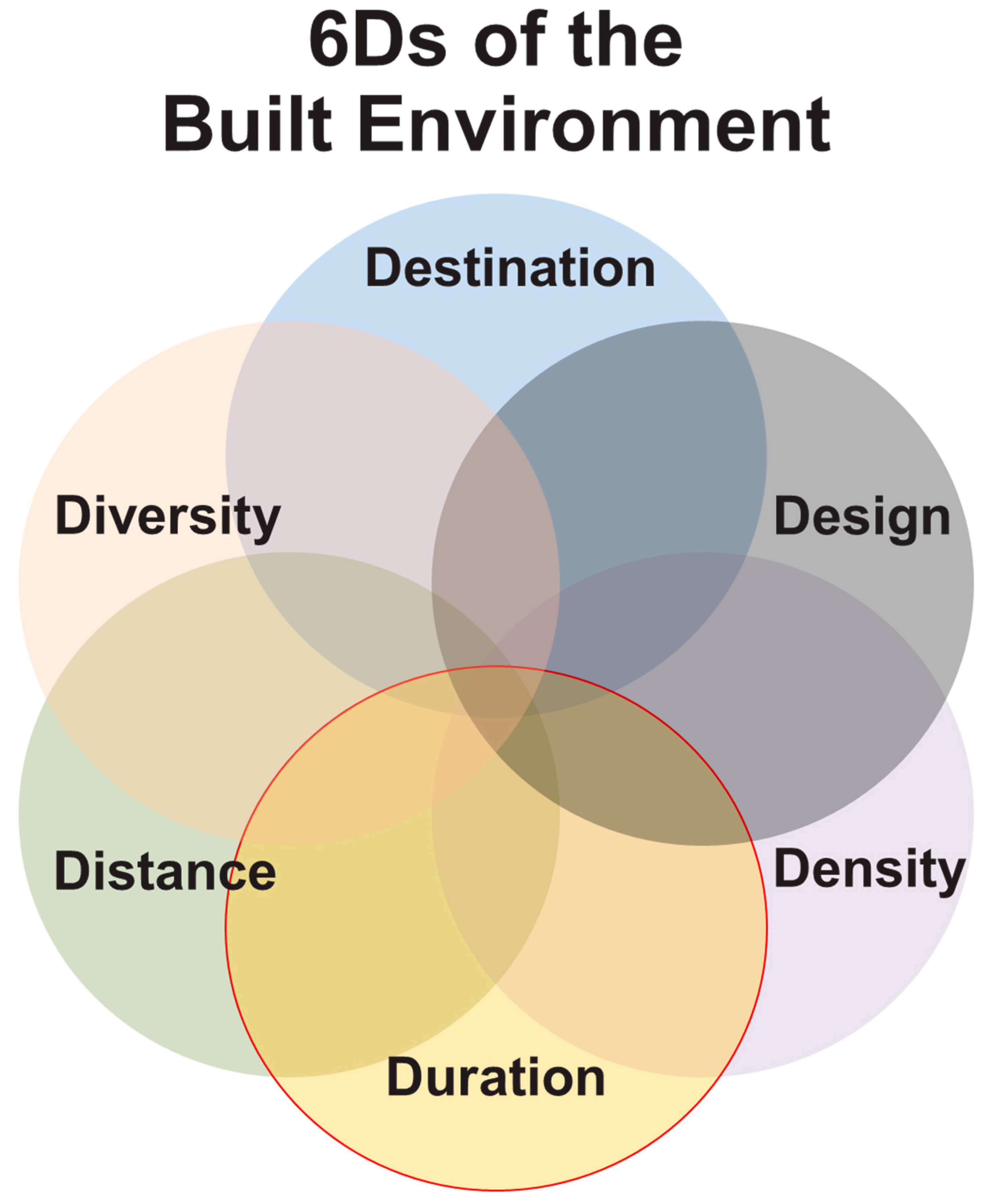 Duration as the Sixth Dimension of the Built Environment Travel Behaviour Framework