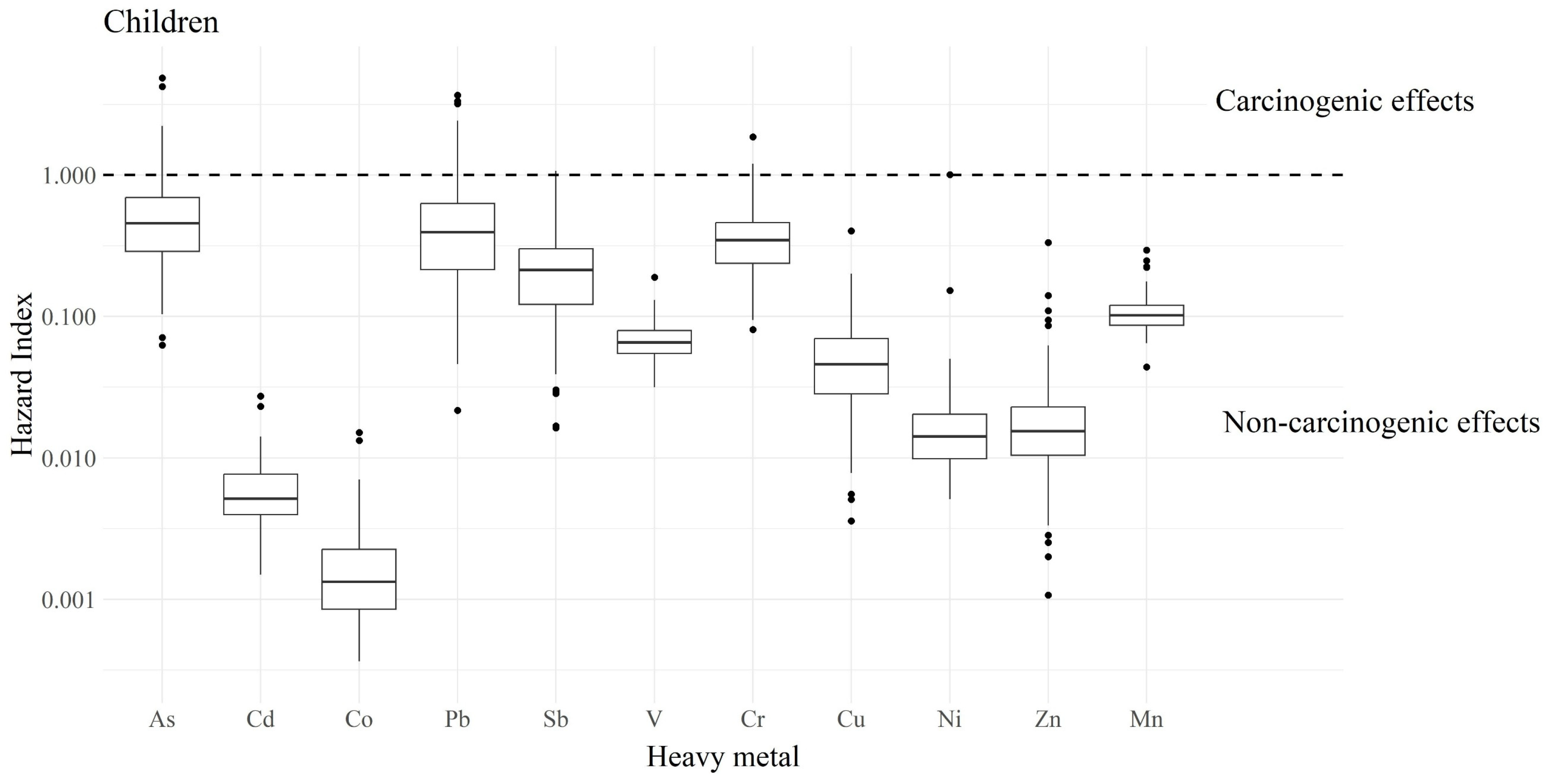 - Lu, H.; Shen, Y.; Maurya, P.; Chen, J.; Li, T.; Paz-Ferreiro, J. Spatial Heterogeneity of Heavy Metals Contamination in Urban Road Dust and Associated Human Health Risks. Land 2025, 14, 754. [Google Scholar] [CrossRef]