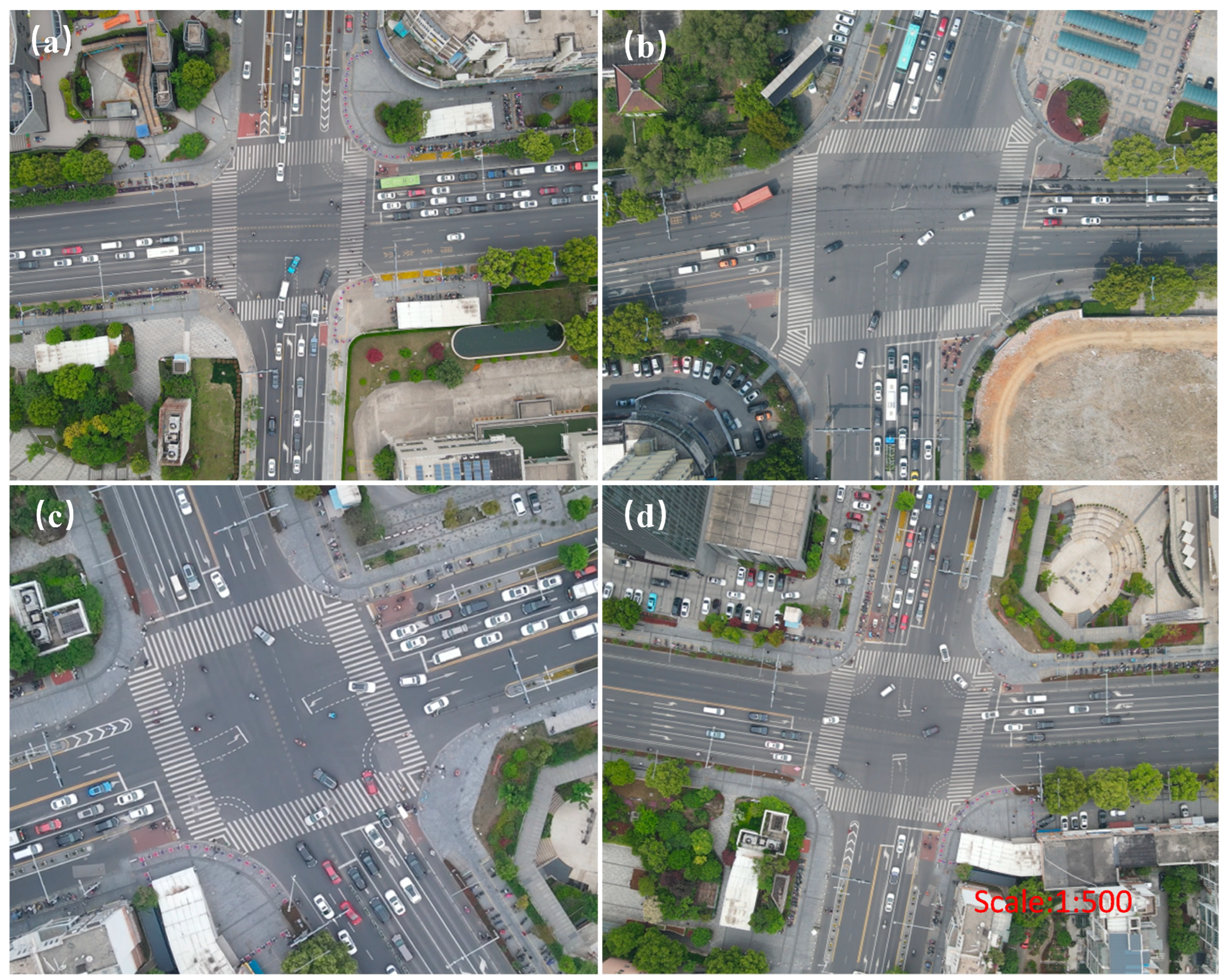 6]. At intersections, due to the shared space between motor vehicles, non-motorized vehicles, and pedestrians, there is a game in the process of mixed traffic flow interaction. Road users often ignore the priority-to-the-right rule and rely on who arrives first to pass first. This usually results in more frequent traffic conflicts and crashes in the intersection [