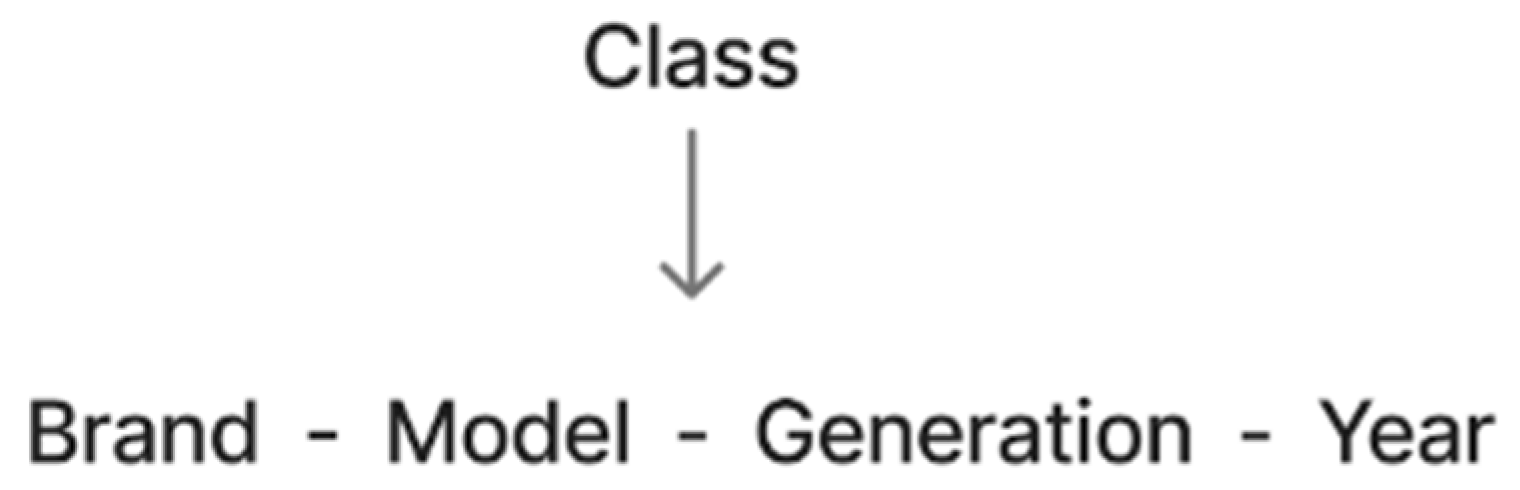 Recognizing that high-quality and diverse data is essential for training accurate classification models, we built a custom dataset specifically designed for fine-grained vehicle recognition. This dataset includes a wide range of vehicle classes, where each class is defined by a unique combination of make, model, generation, and year, as illustrated in