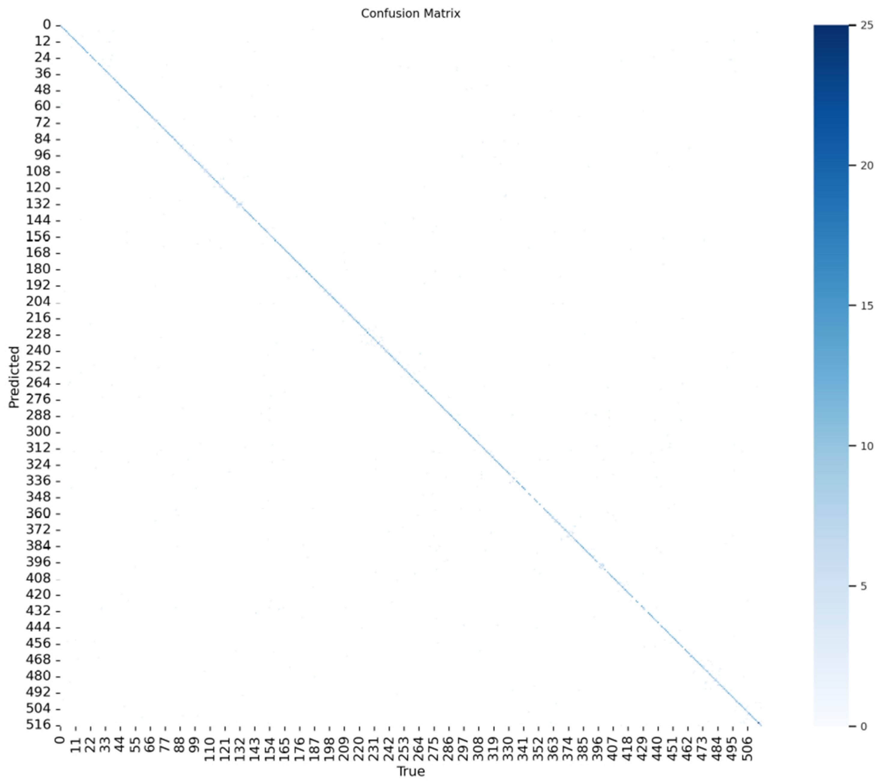 Figure 7). This steady progress reflects the model’s ability to adapt to the fine-grained distinctions required for vehicle recognition, even when faced with a large number of visually similar classes. These results show the model’s capacity to learn subtle differences across 625 vehicle classes.