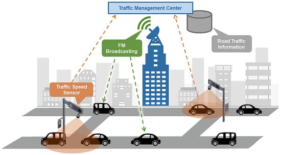 Information from traffic speed sensors is comparable to that provided by a conventional car navigation system. Driving speed data collected by traffic speed sensors installed at locations such as traffic signals are first aggregated at a traffic management centre and then transmitted to individual vehicles. Using this congestion information, each vehicle estimates the shortest expected travel time and select its route accordingly. The specific mechanisms of car navigation systems vary across countries, with the Japanese system illustrated in Figure 2. In this system, data collected by traffic speed sensors are sent to a traffic management centre and transmitted to the vehicle via FM broadcasting.