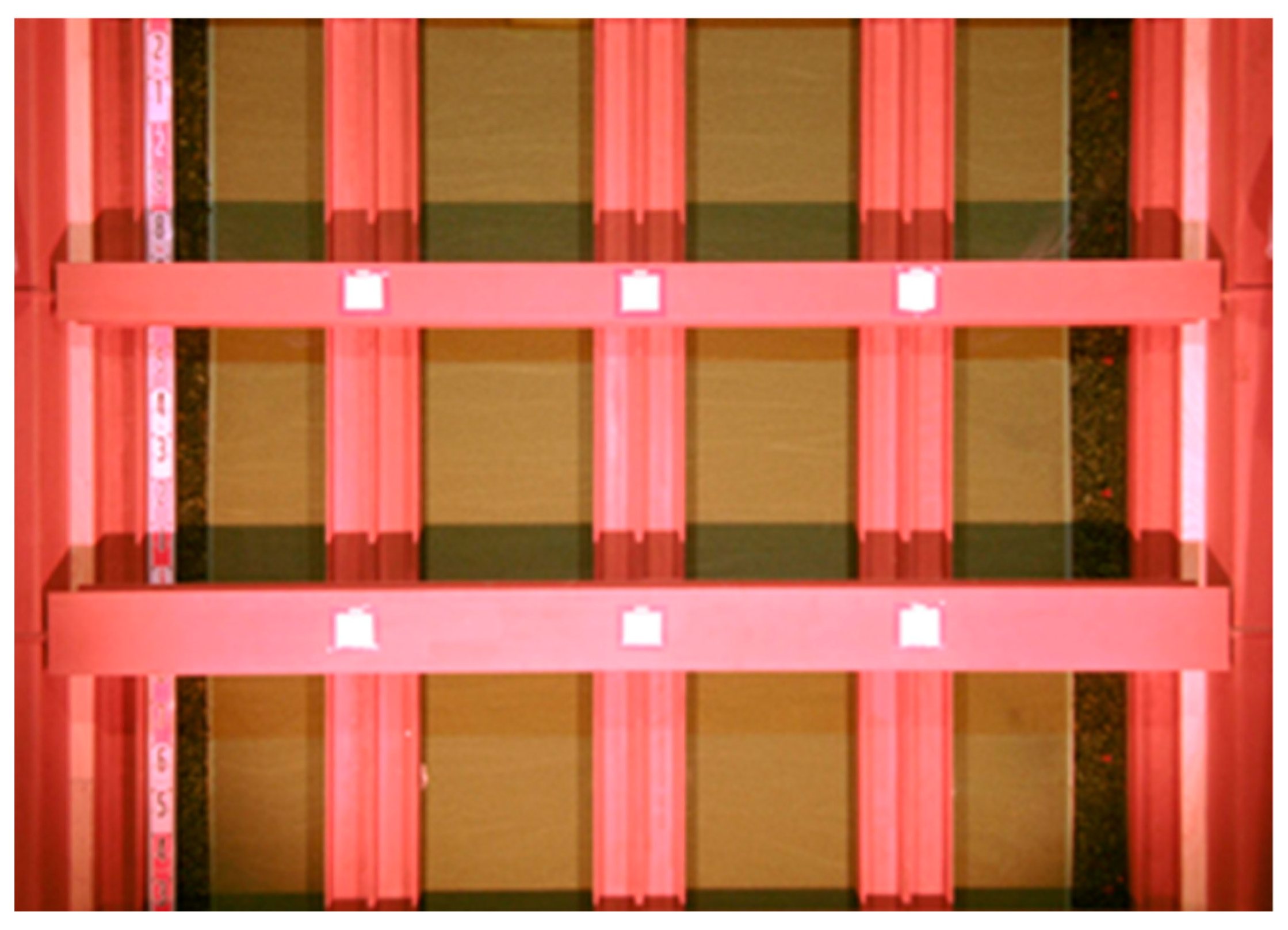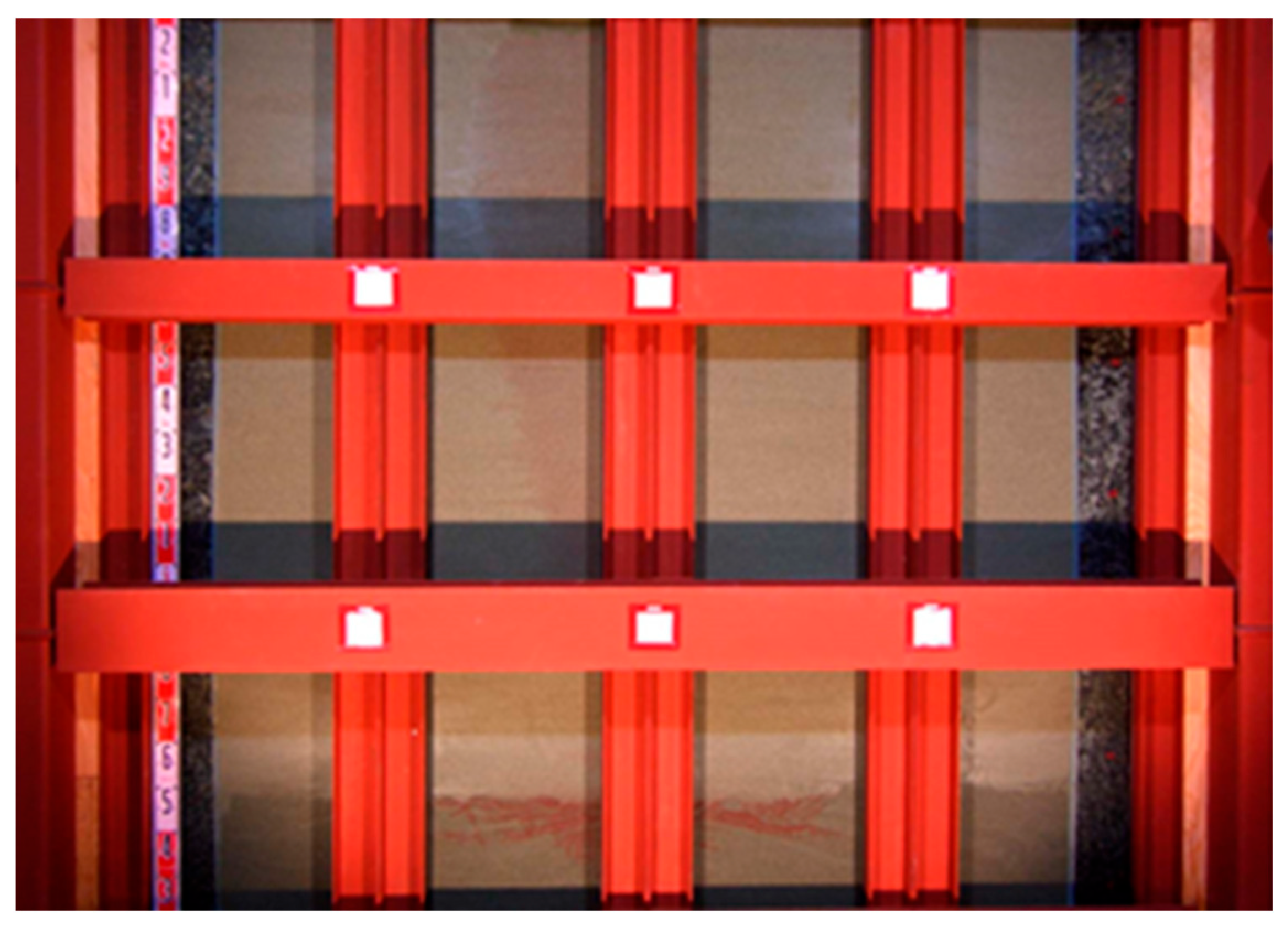 Both the large-scale soil tank experiment and the numerical simulations were designed under quasi-two-dimensional conditions. The tank was 0.6 m deep, and impermeable boundaries were applied in the out-of-plane direction to suppress lateral spreading in the depth direction in both approaches. Thus, the focus of the comparison between the experiments and simulations is on vertical and in-plane horizontal redistribution under identical boundary constraints rather than on three-dimensional spreading effects.