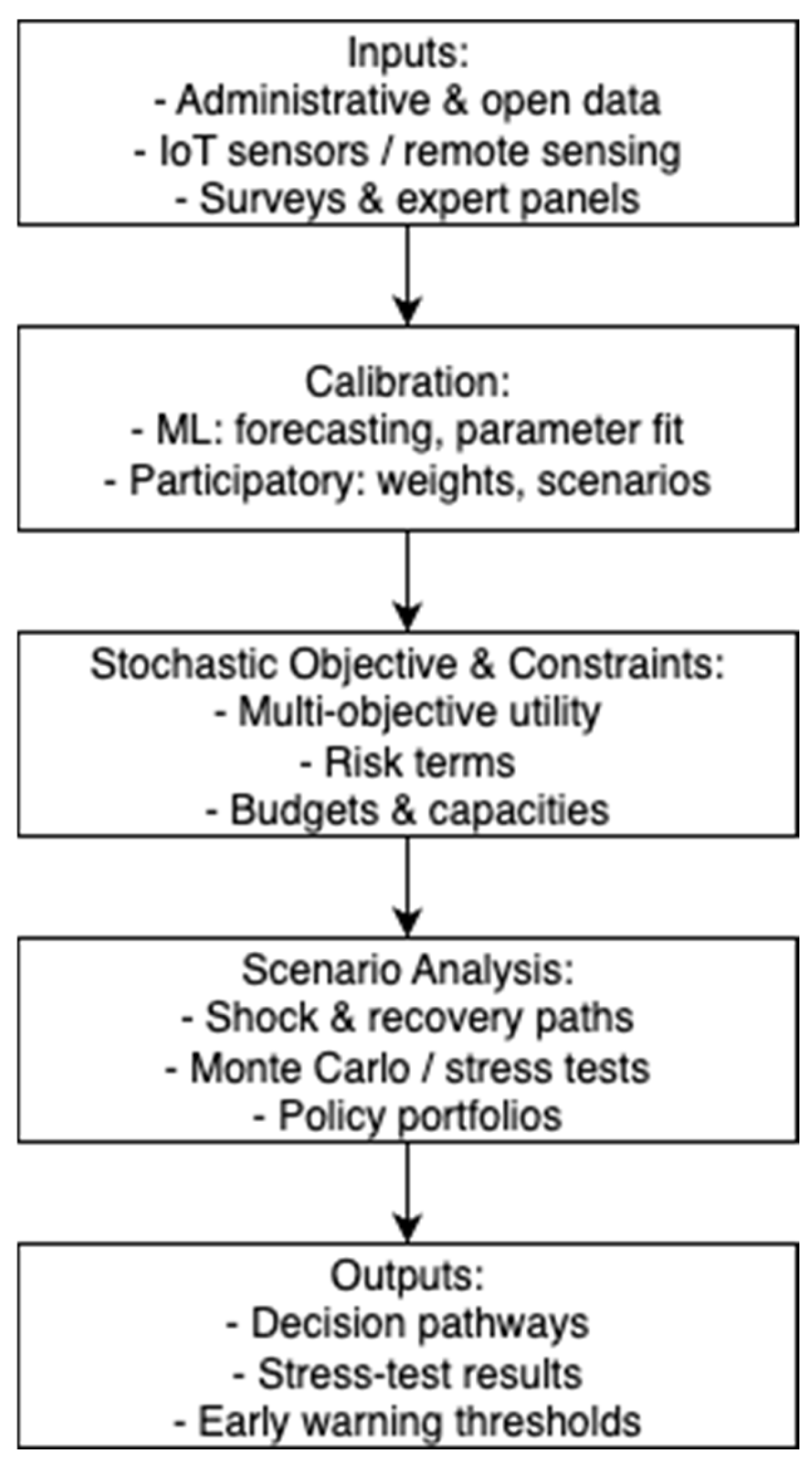 - An integrative recovery framework. We offer a modular structure that connects institutional coordination, critical infrastructure, digital services, and sustainability objectives, making cross-sector dependencies explicit.