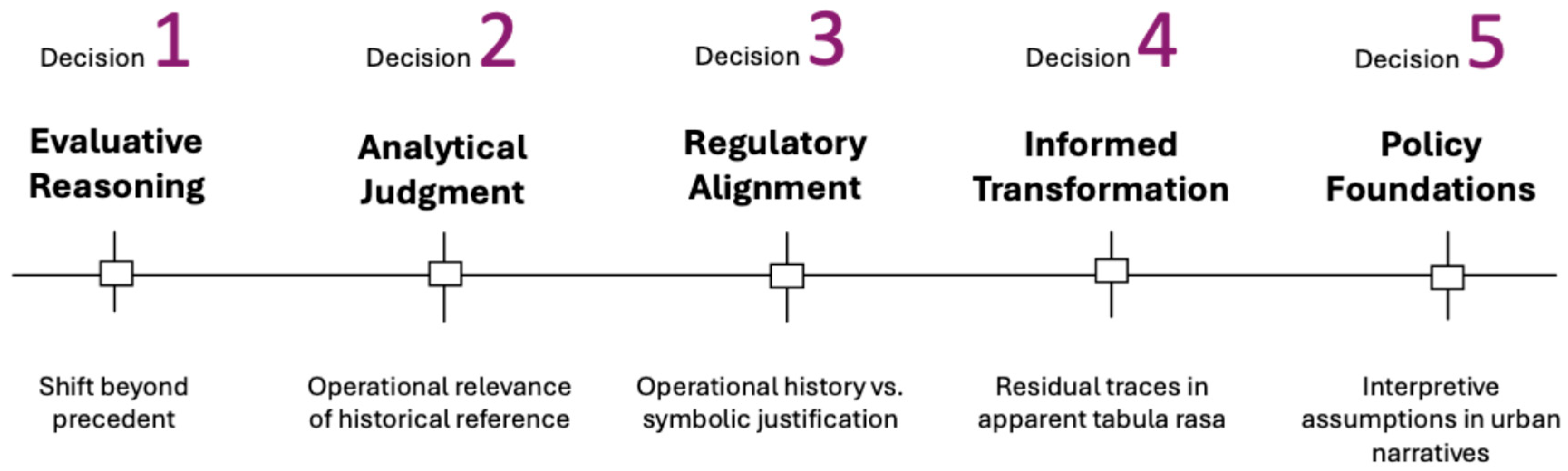 - Urban research has long wrestled with this relationship to the past—not as a chronological record but as an interpretive field that structures how the present is understood and how the future is imagined [67]. This critical perspective, which may be described as critical metahistoricism, moves beyond documenting events to examine the concepts through which history is narrated, appropriated, and mobilized in planning and design discourse [15,68].