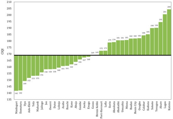 The baseline CIQI is constructed for 37 cities across Nigeria for which data is available. Table 1 shows the 37 cities for which the CIQI is constructed together with the source of data for each corresponding city.