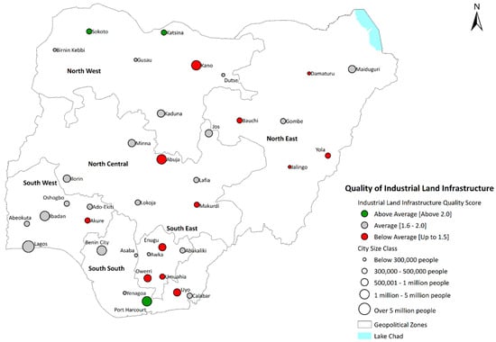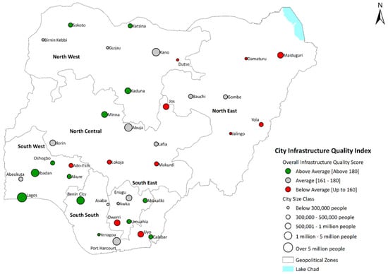 In particular, we demonstrated that the application of multivariate data analysis can be helpful in understanding and interpreting the dynamics of the quality and coverage of urban infrastructure. We have shown that city level relative diversity in the quality of infrastructure exists within and between the six geopolitical regions of Nigeria. An interesting finding from this preliminary analysis is the influence that the quality and extent of industrial land (and transport to some extent) is having on the overall CIQI, and particularly the positive impact this has had on the overall performance of cities in the North West of Nigeria, which rank higher than would have been anticipated. On the contrary, the influence of industrial land on the overall CIQI has had a negative impact to the performance of several cities in the southern and central parts of the country, including Lagos and Abuja.