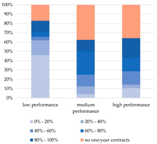 Types of contracts offered by performance category (percentages calculated from the total number of answers received for each type of contract).
