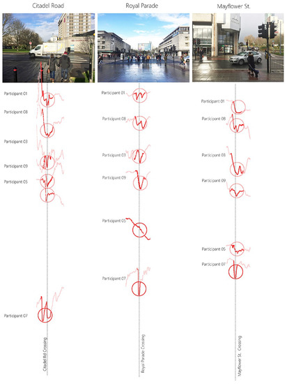 Crossings at Citadel Road, Royal Parade and Mayflower Street recorded the highest number of participants (all of the 6 participants) experiencing a stress ‘peaks’.