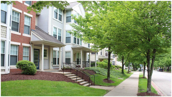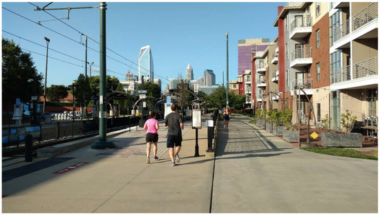 Pedestrian-oriented urban environments that support active transportation, i.e., walking and cycling, are expected to offer numerous benefits relative to less-walkable areas. Residents of more-walkable neighborhoods, generally defined as those with mixed land uses (particularly residential and commercial), moderate to high densities, well-connected street networks, access to transit, and pedestrian infrastructure, such as sidewalks and street trees, have been shown to have lower rates of obesity and other medical conditions [13,14,15], as well as more social connections and enhanced social capital [16,17,18]. A decrease in automotive dependence is expected to have environmental benefits as well, with fewer vehicle miles traveled (VMT) resulting in reduced carbon emissions and air pollution [19,20].