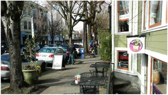A walkable streetscape in the fashionable Northwest District, Portland, OR, USA. Photo by author.