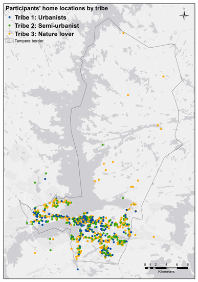Further, it is important to note that “success” in realising one’s actual housing preferences depends on many factors. Factors such as income, family structure, life-course events, and family and social ties can significantly affect one’s housing choices [6,20]. Despite the availability of large areas of Tampere that match Tribe 3 (Nature lovers) revealed preferences, only a small percentage live in a setting that matches their stated preferences. This finding suggests that the supply of desirable physical environments for housing was not a limiting factor, and that social and economic factors may be the driving forces constraining housing choices and the realisation of preferences in the Tampere housing market.
