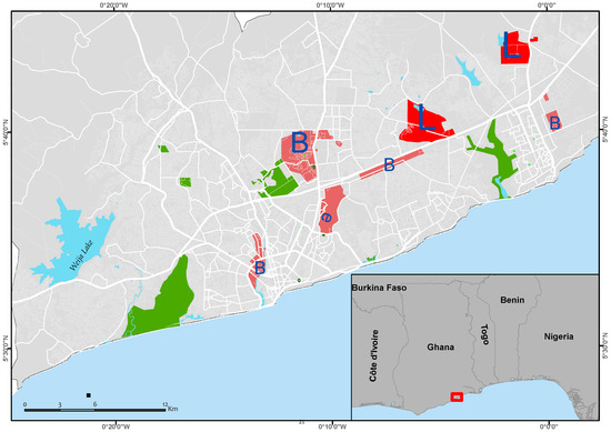 - Grant, R. Globalizing city: The urban and economic transformation of Accra, Ghana; Syracuse University Press: New York, NY, USA, 2009. [Google Scholar]