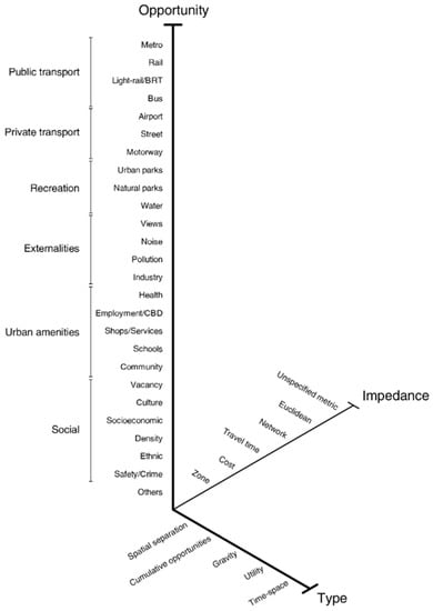 At a glance, these definitions seem to have some similarities that can be defined as components in the specification of accessibility. Opportunities and activities are referring to the same thing, and, together with the “potential of interaction” from the second definition or “overcoming of spatial separation” from the third; it might refer to the “intensity of the possibility” in the first definition. Geurs and van Wee [] argues that there are four inter-related components: a land-use, transport, temporal, and individual component, which together compose different types of accessibility measures.