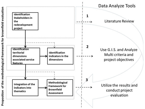 The quality of brownfield conversion is related to meeting users’ expectations for the rehabilitation of these sites. This can be attained through the use of suitable indicators. As stated by Willians and Dair (2007) and Ballesteros and Ramirez (2007), cited in Sardinha et al. (2013) [39], attachment to cultural heritage must be among the objectives of redevelopment projects because of the influence of the concepts of landscape and the social aspects of the community. The indicators related to the conditions of public safety, accessibility, etc., also need to be part of the redevelopment of brownfields [42,47,54,56]. A new methodological framework characterized by a multi-criteria, transversal, and comprehensive approach is a requirement for moving towards sustainable redevelopment.