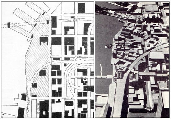 Figure 3). The major task was to transform these 30 acres, mostly empty, into a district of buildings, streets, plazas, and parks that would all contribute to a sense of life, atmosphere, and wholeness. Eventually, the students converted the waterfront site into a set of places that included a pedestrian mall, a main square, a waterfront park, a market, and fishing pier (see