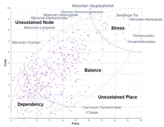 “Node-place diagram” for the Munich metropolitan region in 2019 (Source: own work).