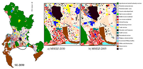Metro South East Integration Zone; (a) MSEIZ-2030 under the SE scenario; (b) MSEIZ in 2005.