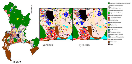 Metro South East Integration Zone; (a) MSEIZ under the PI-2030 scenario; (b) MSEIZ in 2005.