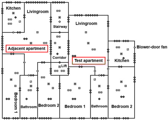 Graphic interface for each floor of the multistory building, where the blower-door fan was only installed in the test apartment.