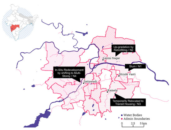 - MASHAL. Pune Slum Atlas; CHF International: Pune, India, 2011. [Google Scholar]