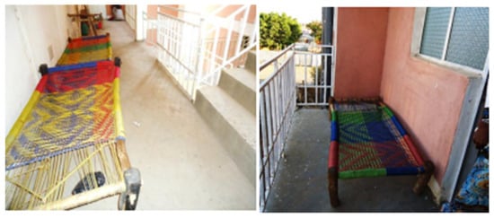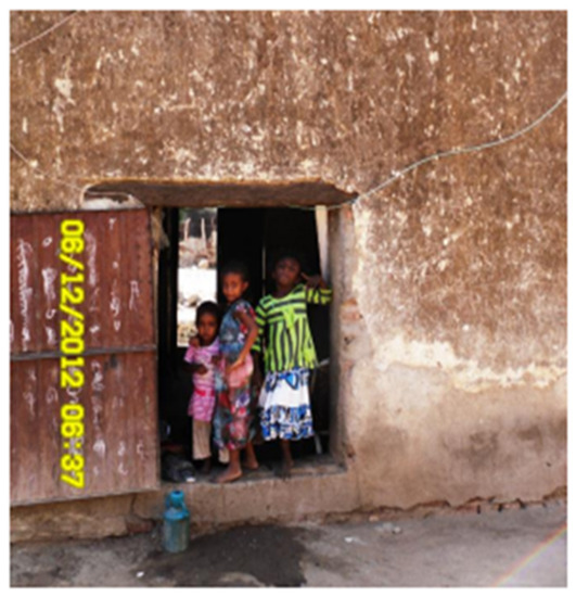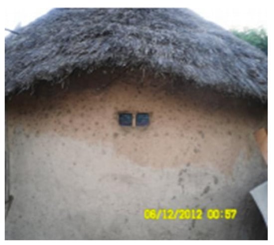 The roofs of thatch houses have a small link to the wall, which reduces heat transfer from the roof to the wall during the day. The roofs of these houses can also provide shade to the walls from the harshest sun (Figure 6). When the door is closed, small and opposite windows are the only sources of natural light (Figure 7). These windows on opposite sides facilitate cross ventilation.