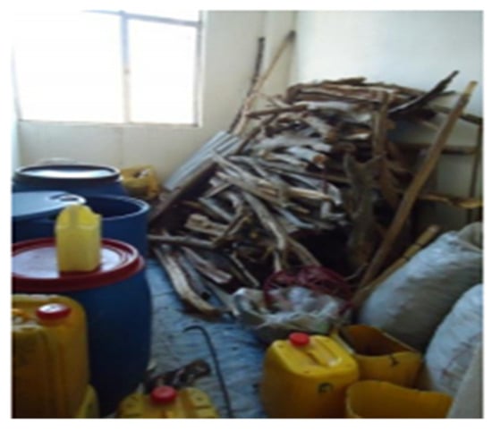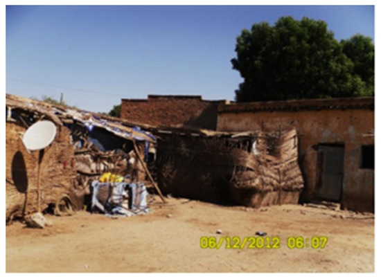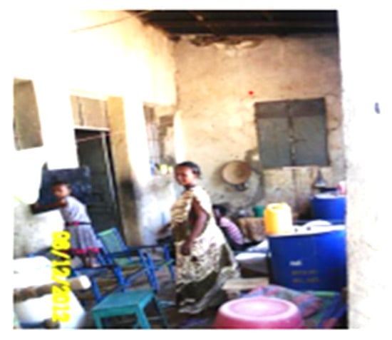 Old thatch roof houses constitute some of the first permanent living houses in Semera city, according to information obtained from key informant interviews (Figure 5). The walls of the houses are made of wood and plastered with thick mud. The roof is built in wood and covered in thick thatch. The floor is usually made of sand, but it may also be made of soil. Sand and soil floors promote the use of evaporative cooling. When water is sprayed on sand floors, hot and dry air comes in contact with water and it begins to evaporate with the help of latent energy taken from the air. There are no ceilings in these houses, and the internal space elevation is up to 4 m.