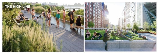 - The High Line. 2011. Available online: https://summerssce10.files.wordpress.com/2010/06/highline-part-1.pdf?fbclid=IwAR0y3GYWrnYCCg_hDuTizJxteyOQuxrFjjAfKPaNSuKyFJtXoKd0htZYsXE (accessed on 1 March 2021).