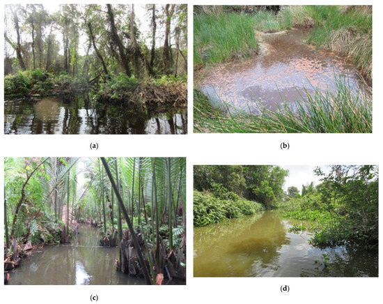 | T5 | Melaleuca habitat | P13 | Melaleuca habitat with floating membrane surrounded by Melaleuca, Nypoideae |