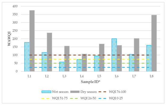 | Sample ID * | EC | pH | COD | PO43− | NH4+ | NO3− | TSS | BOD5 | DO | WAWQI |