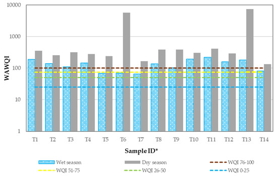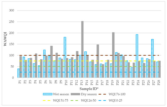 - Akter, T.; Jhohura, F.T.; Akter, F.; Chowdhury, T.R.; Mistry, S.K.; Dey, D.; Barua, M.K.; Islam, M.A.; Rahman, M. Water Quality Index for Measuring Drinking Water Quality in Rural Bangladesh: A Cross-Sectional Study. J. Health Popul. Nutr. 2016, 35, 1–12. [Google Scholar] [CrossRef] [Green Version]