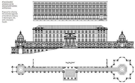 Interestingly, traditional and classical architectures also capture all of these elements. In particular, point (4) contains the traditional designer’s method of creating coherent compositions that bind different building parts and individual buildings into a visually harmonious context. In fact, much of the know-how regarding ways to enhance the user’s emotional experience is inherent to the architectural literacy component of the classical design method and traditional architecture [].