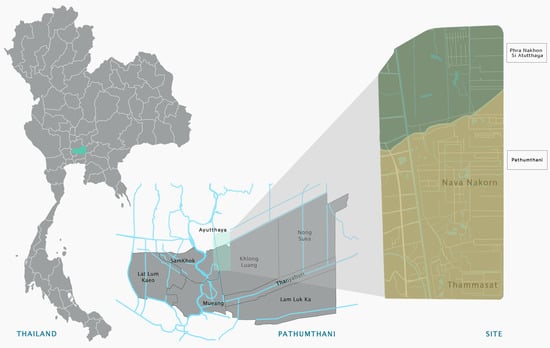 - Pathum Thani to Grow into ‘Market City of Thailand’. Available online: https://www.nationthailand.com/Economy/30352064 (accessed on 23 December 2021).