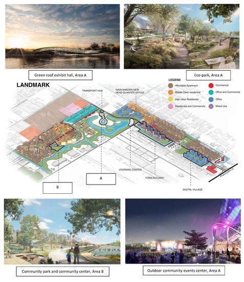 We employ a case study approach of the Smart City concept in this paper to illustrate visions for the sustainable transformation of a peri-urban area in Thailand. The scale of the case studies ranges from the larger superblock to the site scale in physical space, but also considers aspects of cyberspace and programmatic space. Lenzholzer et al. [] reflected on the need for landscape architecture to formalize its research methods so that they are discipline specific and academically rigorous and, in particular, explored the “research through designing” concept. Research through designing considers four traditional epistemologies that may be adapted within landscape architecture as a means to generate new knowledge about landscape transformation: (post)positivist, constructivist, advocacy/participatory and pragmatic. Each of these epistemologies, when viewed through the landscape architecture lens, necessarily requires a transdisciplinary approach that integrates methods and knowledge from sciences, social sciences, and engineering within the design context. In using case studies, we take the pragmatic approach of research through designing to examine the potential transitioning of the peri-urban superblock area into a smart region.