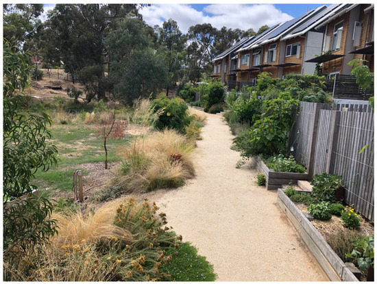 Birkeland [13] suggests that while the notion of increasing natural capacity seems counter-intuitive to the notion of development, it is possible to increase “ecological space” through carefully designed “nature-positive” structures and spaces. This is particularly true in urban areas where the ecological systems are already highly degraded [22]. Birkeland [13] suggests, that to be truly nature-positive, a development needs to design-in nature in excess of a pre-urban ecological baseline. Planning policy for nature-positive urban development could therefore create the conditions to encourage development that leaves the environment better off than if the development had not happened [23]. This is ambitious, but theoretically possible and increasingly desirable. Innovative urban planning policies in some cities are now shifting to view the city as an ecosystem [6,24], and in a few modern cities such as Singapore, developers are given planning incentives to integrate as much urban nature into new developments as possible [25,26]. Limitations imposed by buildings and roads can be overcome by verge gardens and street trees, as well as biophilic elements on and in buildings, collectively these elements contribute to a net ecological gain. In Singapore, much of the species diversity is not native (such as the rain trees that are ideal street trees in tropical cities due to their root systems and canopy cover potential), thus enabling functional ecosystems that are now attracting biodiversity gains [26,27]. The following case study describes a recently built community that included nature-positive landscaping as a central component of the development and then takes the principles into a broader discussion of how functional approaches to urban ecosystems can improve biodiversity.