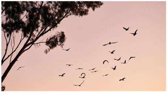 Extensive cockatoo habitats have been measured through bird tracking [48,49]. These studies revealed that cockatoo movement patterns are highly dependent upon habitat, both roosting and foraging species. Cockatoos also have a home range—also dictated by habitat species and quality. Shepherd and Warren’s [49] field observations report that cockatoos congregate around: