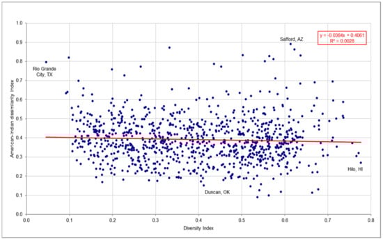 - Hypothesis (H2) is not supported other than very, very weakly. The Native American-white dissimilarity index was not significantly related to racial diversity. The correlation coefficient was −0.052, and the slope was −0.038. The relationship was inverse: the higher the racial diversity, the lower the racial residential segregation.