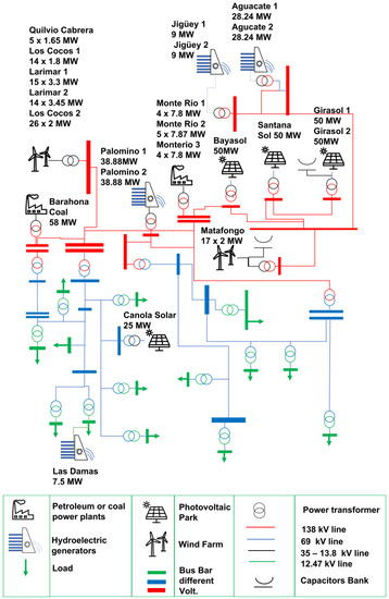 We wish to thank the electricity generation company Haina (Egehaina) for information and support during the simulations using the DIgSILENT software, the Dominican Edesur Energy Distribution Company for the technical data on the demand for its circuits in the southern zone, and the Dominican Electrical Transmission Company (ETED) and the Energy Control Center (CCE) for the information on electric power flows and data on the transmission lines in the southern part of the country.