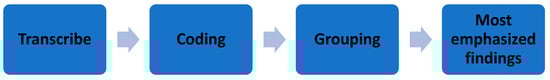 The study begins with coding the transcribed interviews and categorizing them into the most significant themes, after which the most highlighted topics are selected to form the summary of results, as shown in the diagram below. Figure 1 illustrates the thematic analysis procedure for this study.