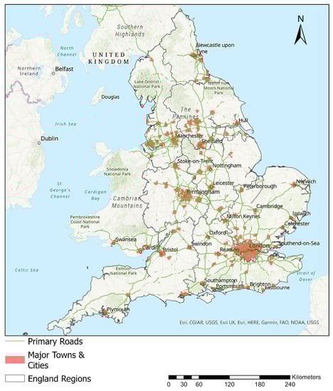 This research is based on a case study of South Yorkshire, a metropolitan county in the north of England. It is a suitable training ground for developing a national model due to its variation in landscape, built-up areas, and subsequent mixes of land use and neighbourhood types. The west is distinguished by the Peak District National Park, and the region sits upon the Yorkshire Coalfield, which is home to many quarries, industrial areas, mines, and mining villages. There are urban and rural settlements, large cities, farming communities, and commuting towns by different modes. The case study therefore covers a range of neighbourhood types, though it is landlocked and not comprehensive in its coverage of neighbourhood types.