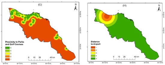 | 2 | Proximity to Parks and Golf Courses (m) | 0–1000 | 5 | Very High | 5.55 |