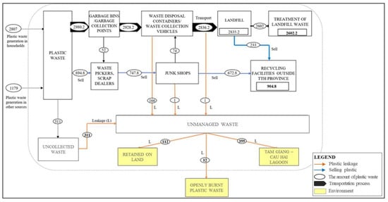 The recyclable process of plastic waste (tons year−1) in the Tam Giang–Cau Hai lagoon system (units in tons).