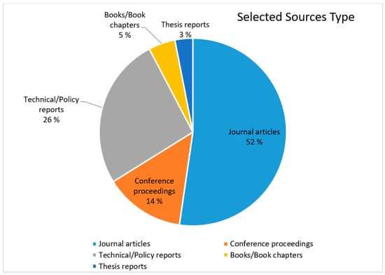 Based on the selected sources included in this study, a descriptive analysis was conducted, focusing on the distribution of source types, year of publication, country of the publishing research institution, methodology employed, and context of the study in relation to the mobility of senior citizens. The findings in Figure 3 present the distribution of the selected 68 sources, where 55% (N = 37) are journal articles, 13% (N = 9) are conference proceedings, 25% (N = 17) are technical policy reports, 4% (N = 3) are books/book chapters, and lastly, 3% (N = 2) are thesis reports. The complete list of the selected sources included can be found in the References section of this paper. This finding reveals that most of the published work related to the mobility needs of senior citizens are mostly journal articles, which is followed by publications linked to policy and technical reports. This is because municipalities across the world are becoming more concerned with issues related to older people in society.