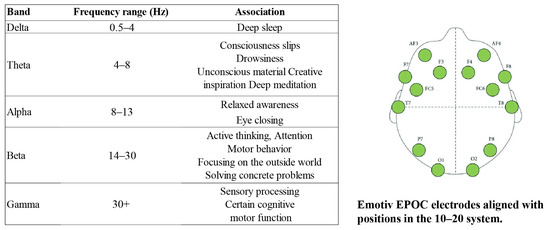 Emotiv EPOC electrodes and its band, frequency range. (Source: Authors).