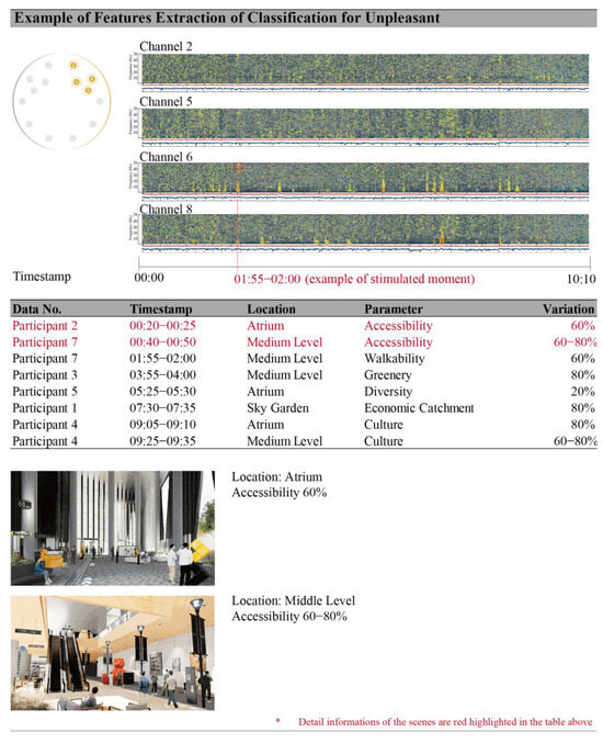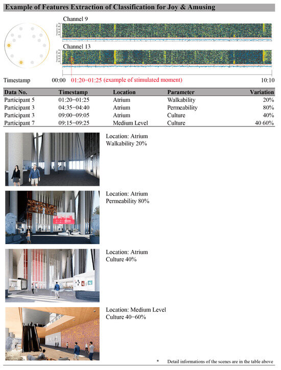 Observing how these spectral patterns evolve over time, in response to specific stimuli presented in the test material (in this case, a simulation video of CapitaSpring), in conjunction with insights from prior studies on EEG patterns associated with arousal–valence levels, facilitated the classification of the EEG data into six distinct emotions [67,68].