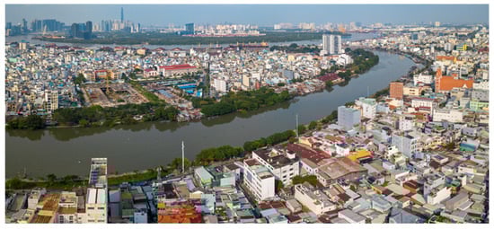 Ho Chi Minh City (10°49′ N, 106°37′ E) (until 1975 Saigon)—henceforth HCMC—is Vietnam’s most populous city, and an important port city for the Southeast Asia and Asia-Pacific regions []. The city is home to an official population of just over 9 million residents, representing 9.1% of the national population []. Estimates suggest that the number is most likely under-reported and closer to 13 million when unregistered floating migrant workers and daily commuters from adjacent provinces are included. Projections show that the city’s population will grow to over 12 million residents by 2030 [].