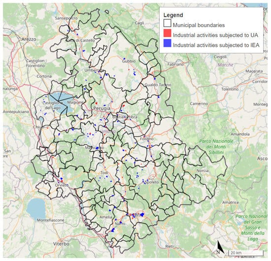 Industrial activities, subjected to Integrated Environmental Authorisation and Waste Unique Authorisation, geolocated in Umbria.